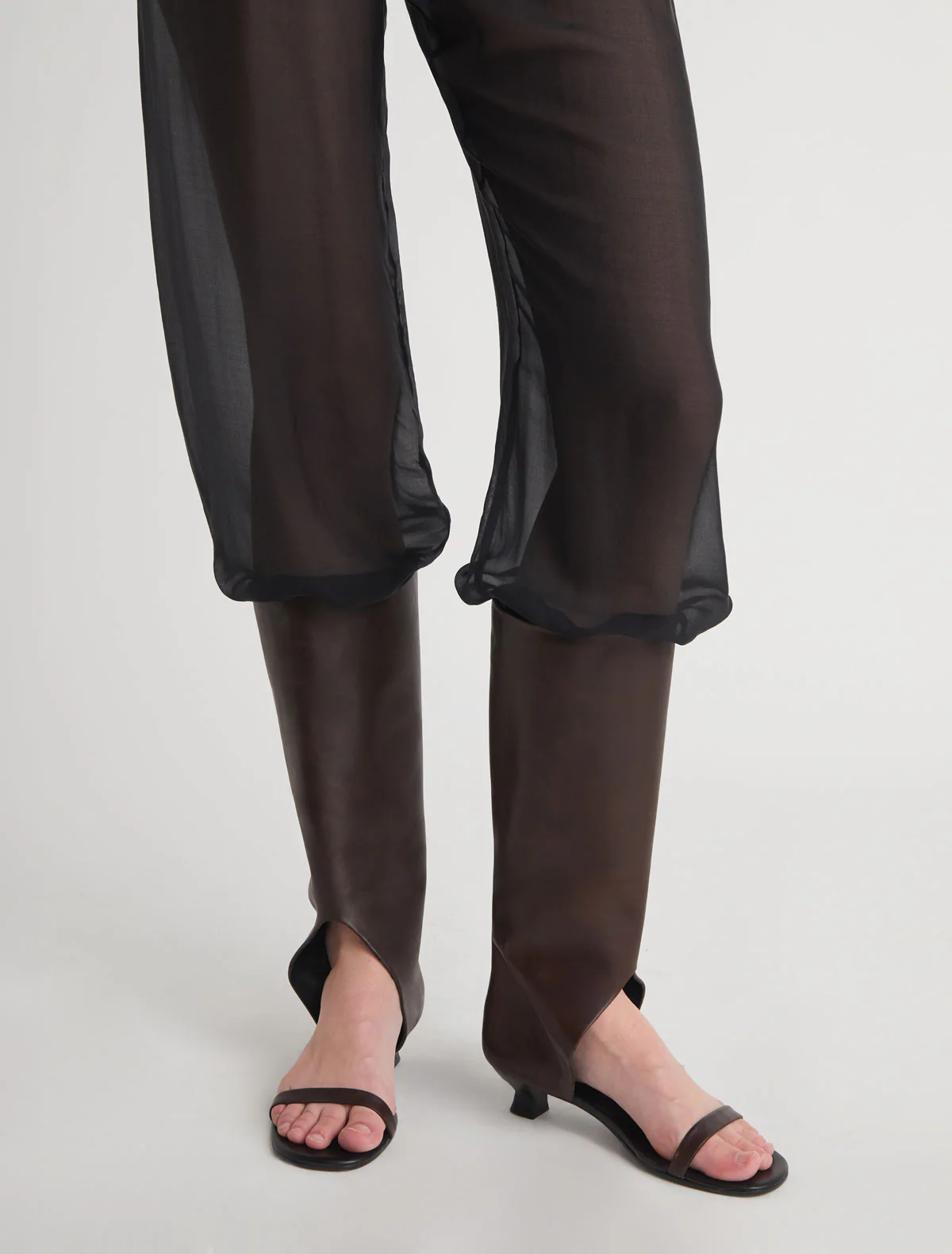 Sandal boot with a thin toe strap and a 3,5 cm heel.